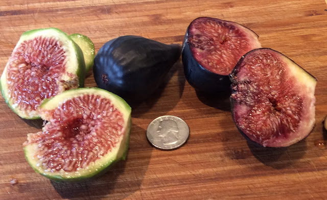 The figs on the right are from the tree I'm giving away, from this summer. On the left is Lattarula, for comparison.
