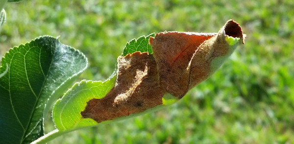 Careful examination of the leaf can give an insight exactly what the problem is, but sometimes we need to dig a bit deeper to find the cause of this. I think there are four possibilities that are causing browning of apple leaves they are pests, diseases, cultural activities and environmental inputs. You should examine correctly or you can call experts for this work.