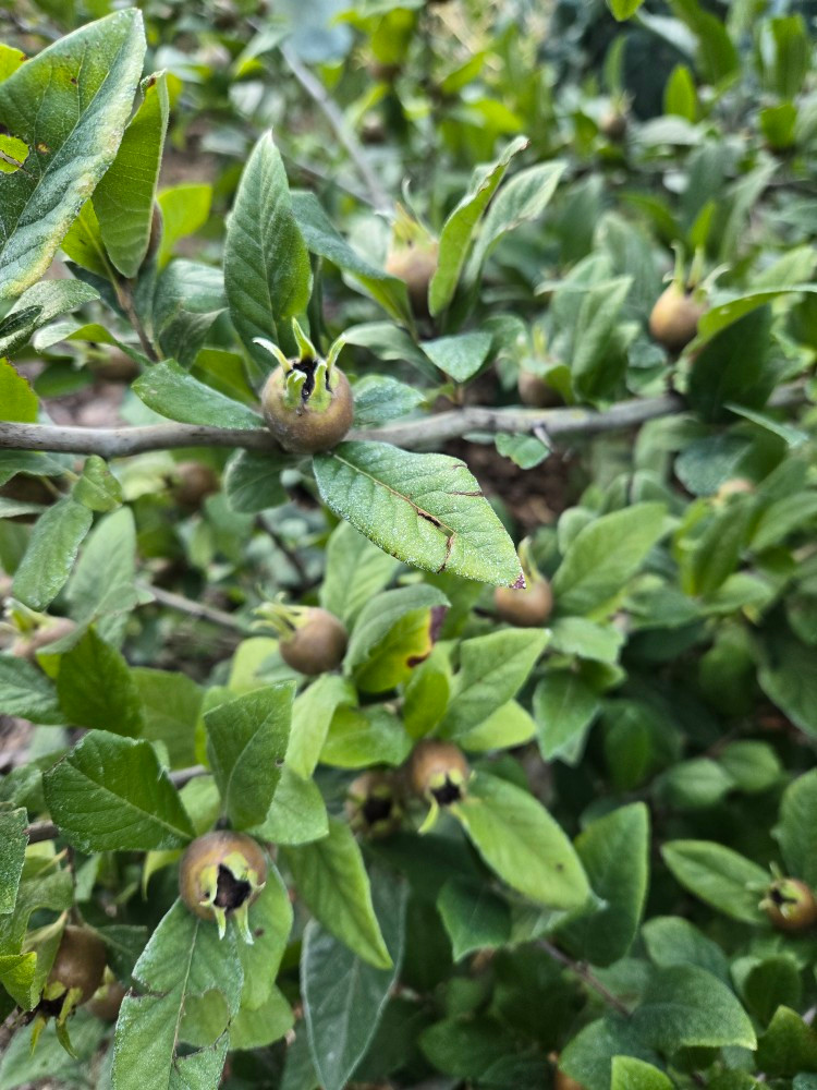 I am growing several medlar seedlings from a few different sources and three of them are making fruit for the first time this season. Two of the plants were quite loaded and have been self thinning through the summer, but still have relatively decent amount of fruit.