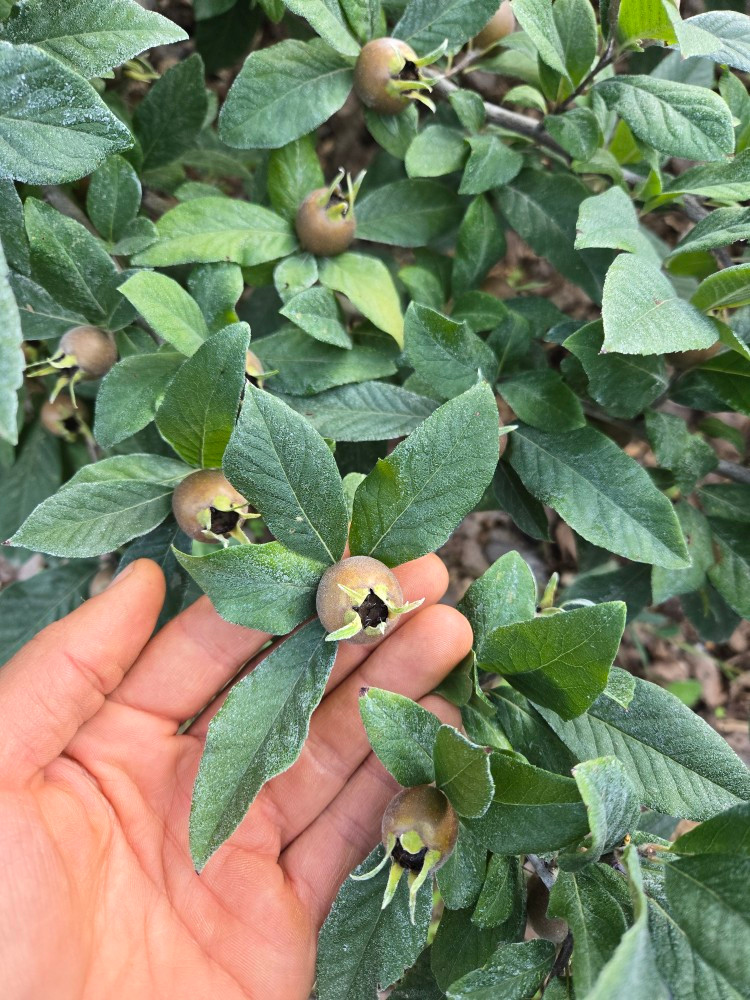 Thank you both for your thoughtful feedback! I wanted to get some photos of my medlars before I replied and I'm including them below. I included my (large size) hand for reference of what the average and larger end of the fruit size is on my three trees that have fruit this year. I also included a photo that shows how dense the fruits are, in case you think thinning may have helped increase fruit size. I'd love to hear your feedback on that too!