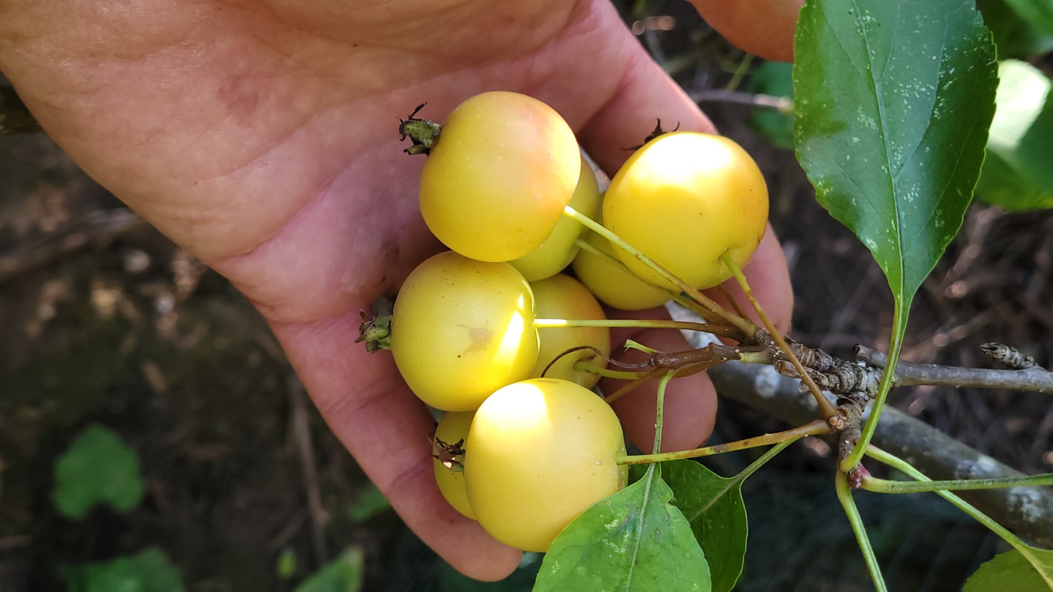 Malus Fusca is common so before you try and satisfy the curiousness you have to investigate pollinators that far down at least know (before next time you go) that sometimes M Fusca is hard to find. Since I know where you live the first thing you might want to do then is learn how often times that Fusca trees also lack fruit to make your pollinators that much harder to find. For example there are a few Fusca trees located at the near NE corner of the fire hall and just on the borderline side of Dog Park. Last week I found two fruits on three trees there.I know you will investigate or at least take this into consideration about the fire hall because your a curious guy (as am I) and the price of gas is high.